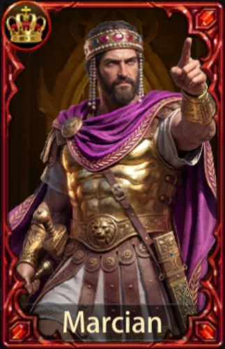 Marcian is a Ranged PvP General with a very high-powered Special Skill, Column of Marcian, making him useful right from the get-go, adding 60% to Ranged Troop attack and defense and 45% to their HP. With development, his kit continues to add to this; however, he is a premium option, meaning it will cost you a significant amount to get his Ascensions. It should also be noted that his buffs are largely only active in attack, and he should therefore not be used in Defense.